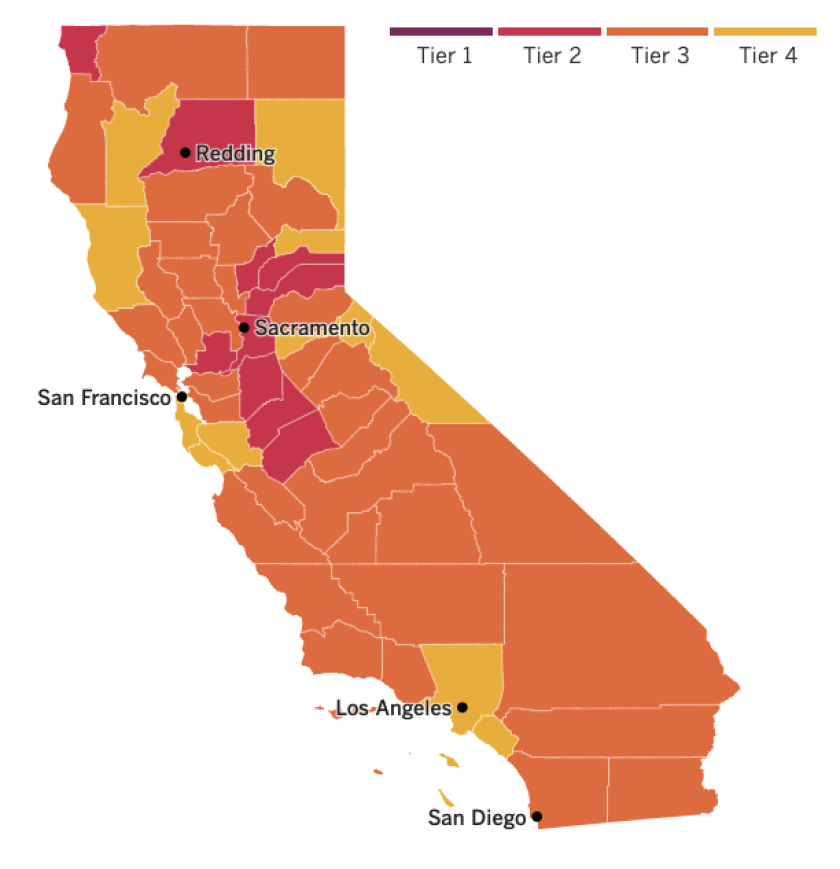 Map Of California Covid Tiers 4 Counties To Yellow Including Santa Clara And Santa Cruz Times Herald